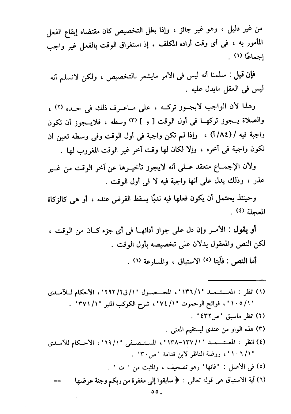 من غير دليل، وهو غير جائز، وإذا بطل التخصيص كان مقتضاه إيقاع الفعل المأمور به، في أي وقت أراده المكلف، إذ استغراق الوقت بالفعل غير واجب إجماعا.
