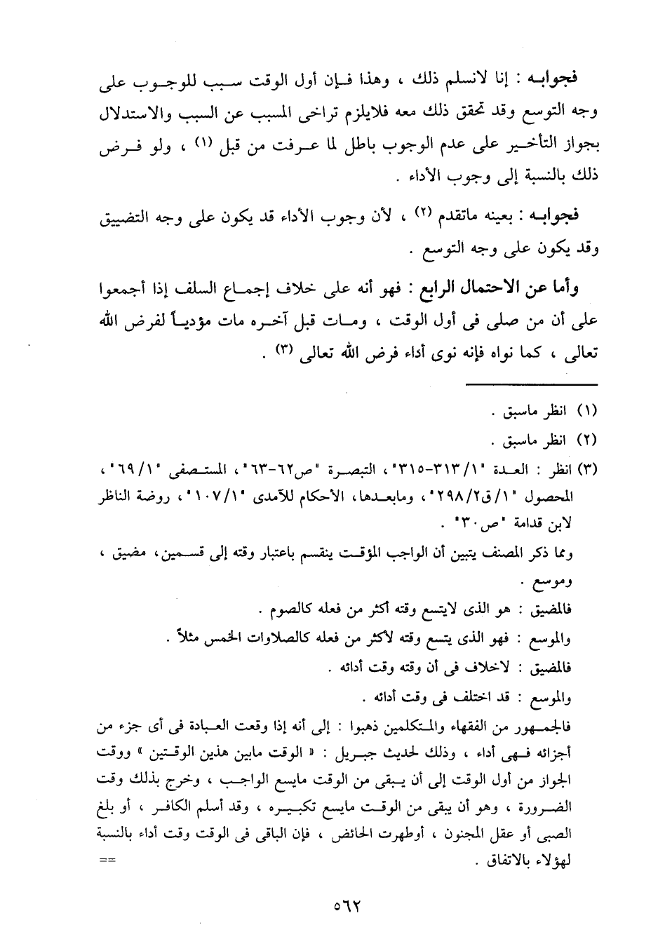 وأما عن الاحتمال الرابع: فهو أنه على خلاف إجماع السلف إذا أجمعوا على أن من صلى في أول الوقت، ومات قبل آخره مؤديا لفرض الله تعالى، كما نواه فإنه نوى أداء فرض الله تعالى.