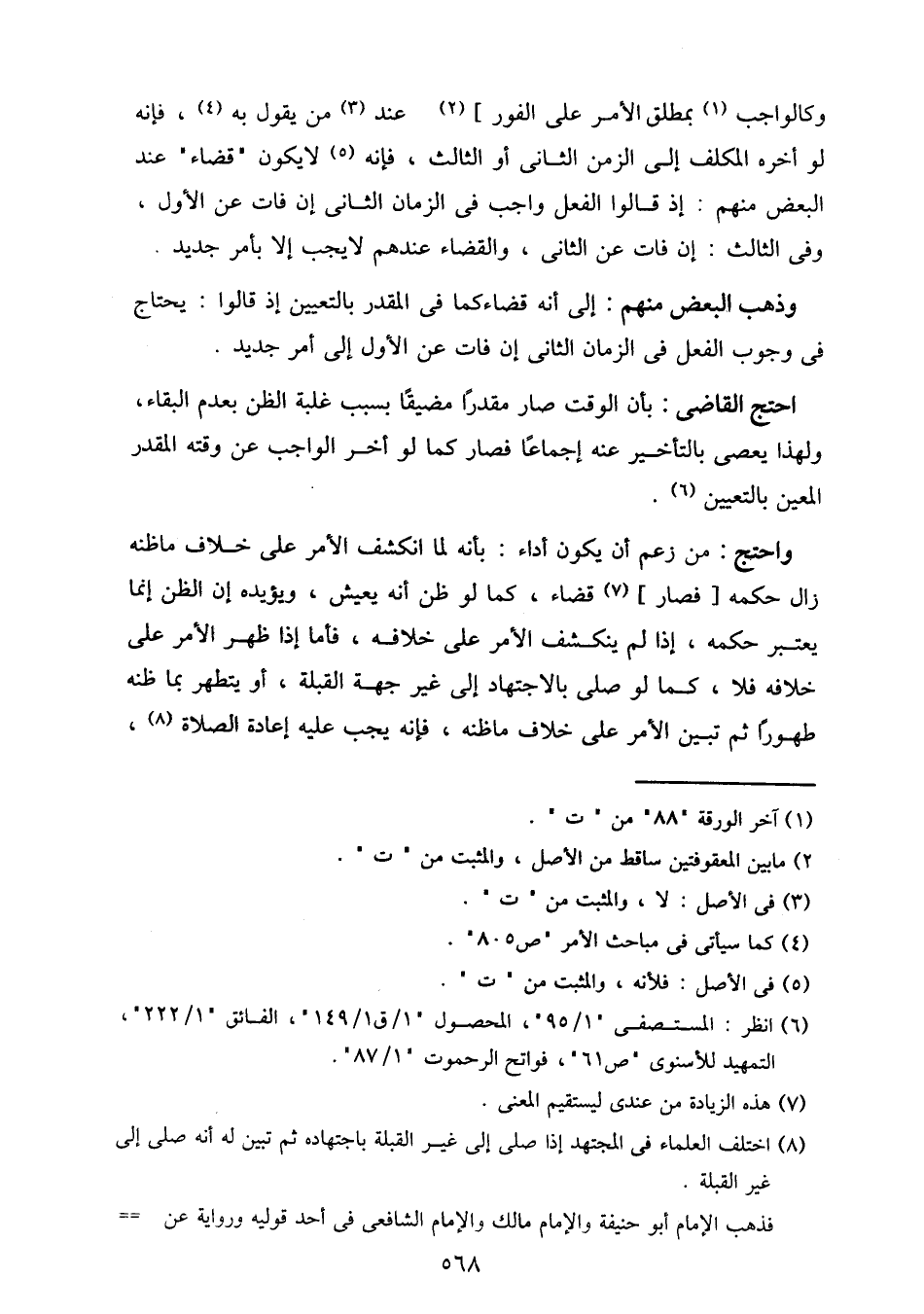 وكالواجب بمطلق الأمر على الفور] عند من يقول به، فإنه لو أخره المكلف إلى الزمن الثاني أو الثالث، فإنه لا يكون "قضاء" عند البعض منهم: إذ قالوا الفعل واجب في الزمان الثاني إن فات عن الأول، وفي الثالث: إن فات عن الثاني، والقضاء عندهم لا يجب إلا بأمر جديد.