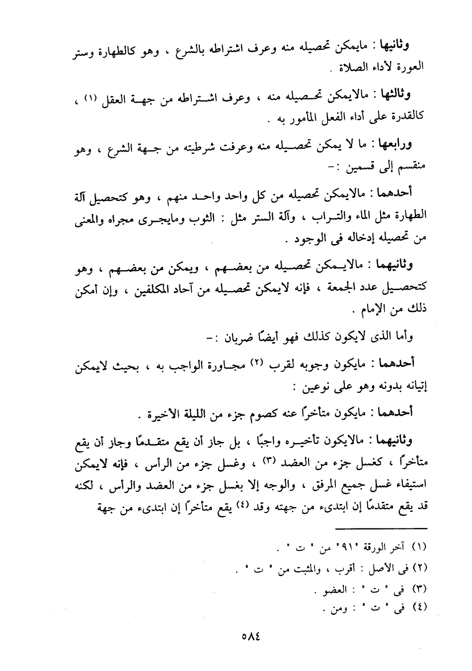 ورابعها: ما لا يمكن تحصيله منه وعرفت شرطيته من جهة الشرع، وهو منقسم إلى قسمين:-