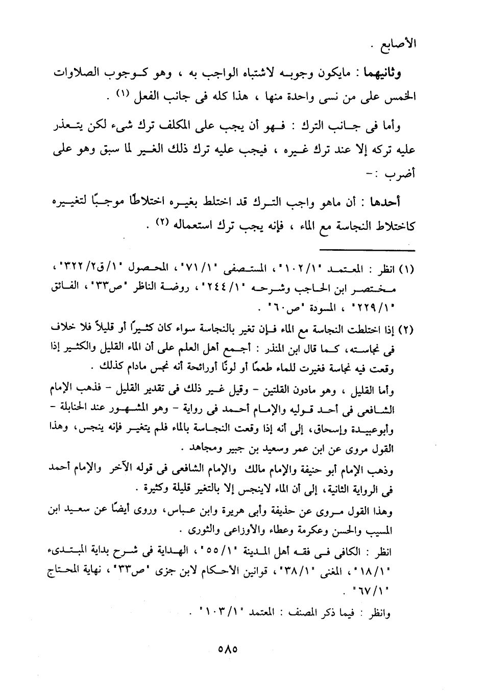 أحدها: أن ما هو واجب الترك قد اختلط بغيره اختلاطا موجبا لتغييره كاختلاط النجاسة مع الماء، فإنه يجب ترك استعماله.