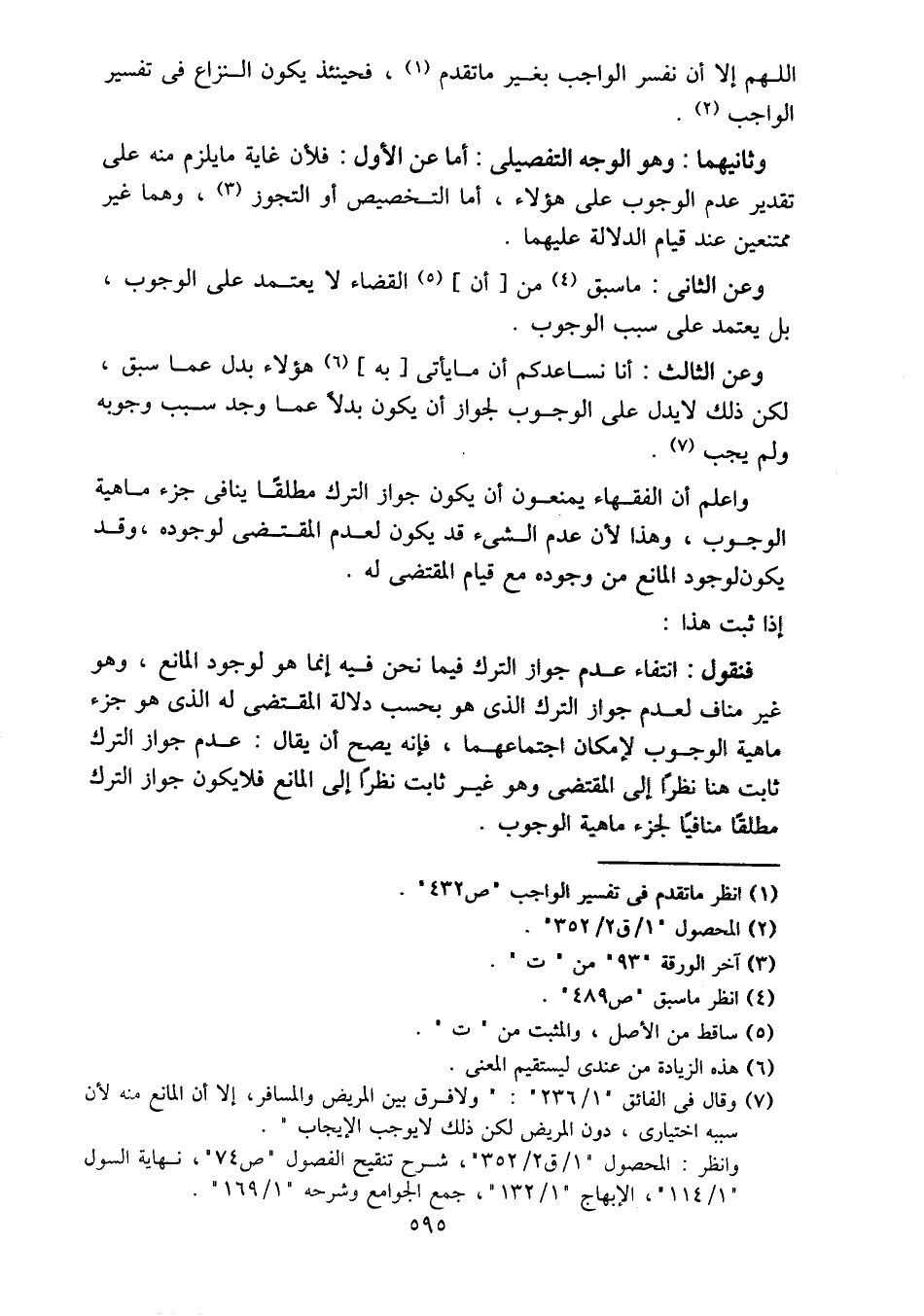 واعلم أن الفقهاء يمنعون أن يكون جواز الترك مطلقا ينافي جزء ماهية الوجوب، وهذا لأن عدم الشيء قد يكون لعدم المقتضي لوجوده، وقد يكون لوجود المانع من وجوده مع قيام المقتضي له.
