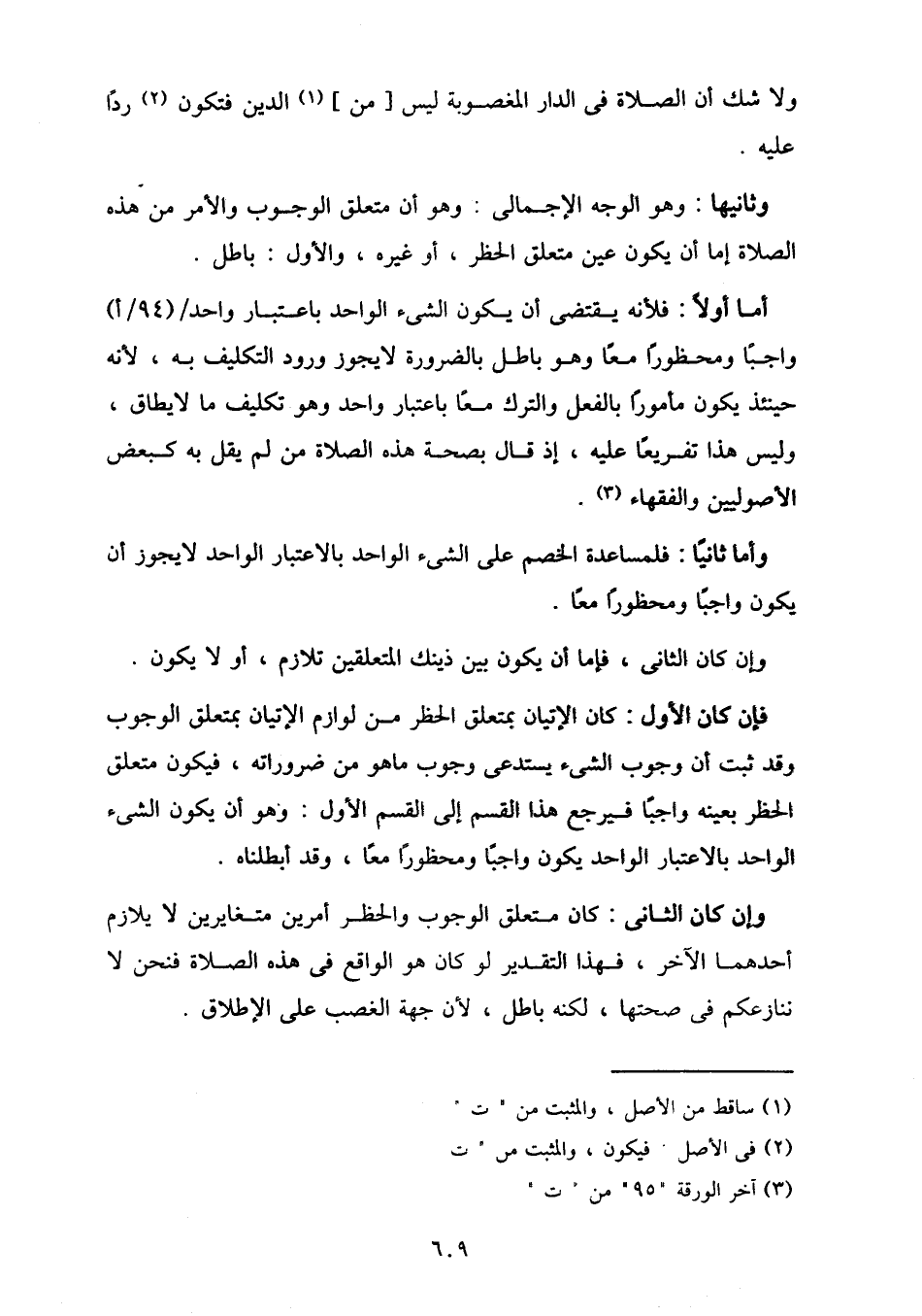 وأما ثانيا: فلمساعدة الخصم على الشيء الواحد بالاعتبار الواحد لا يجوز أن يكون واجبا ومحظورا معا.