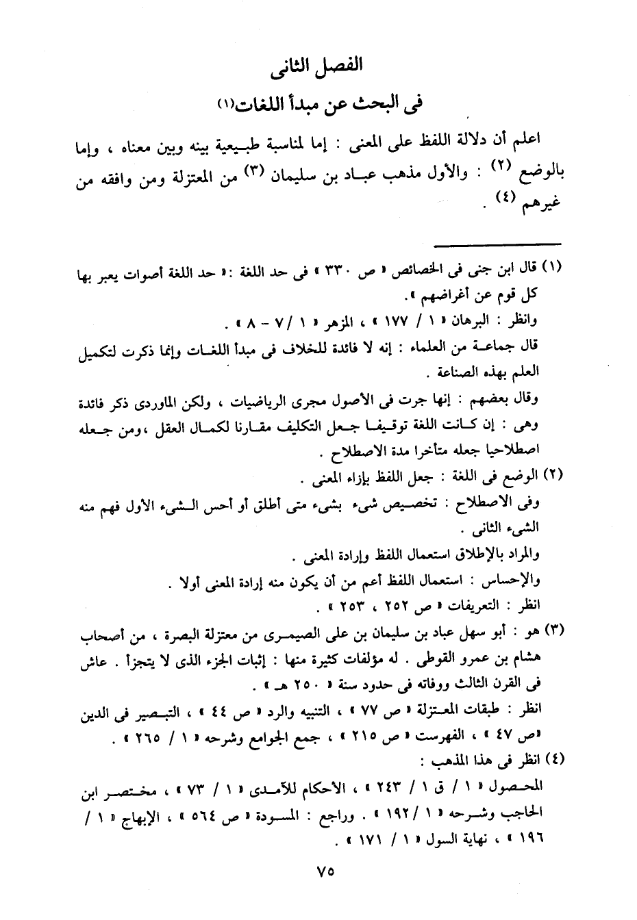 اعلم أن دلالة اللفظ على المعنى: إما لمناسبة طبيعية بينه وبين معناه، وإما بالوضع: والأول مذهب عباد بن سليمان من المعتزلة ومن وافقه من غيرهم.