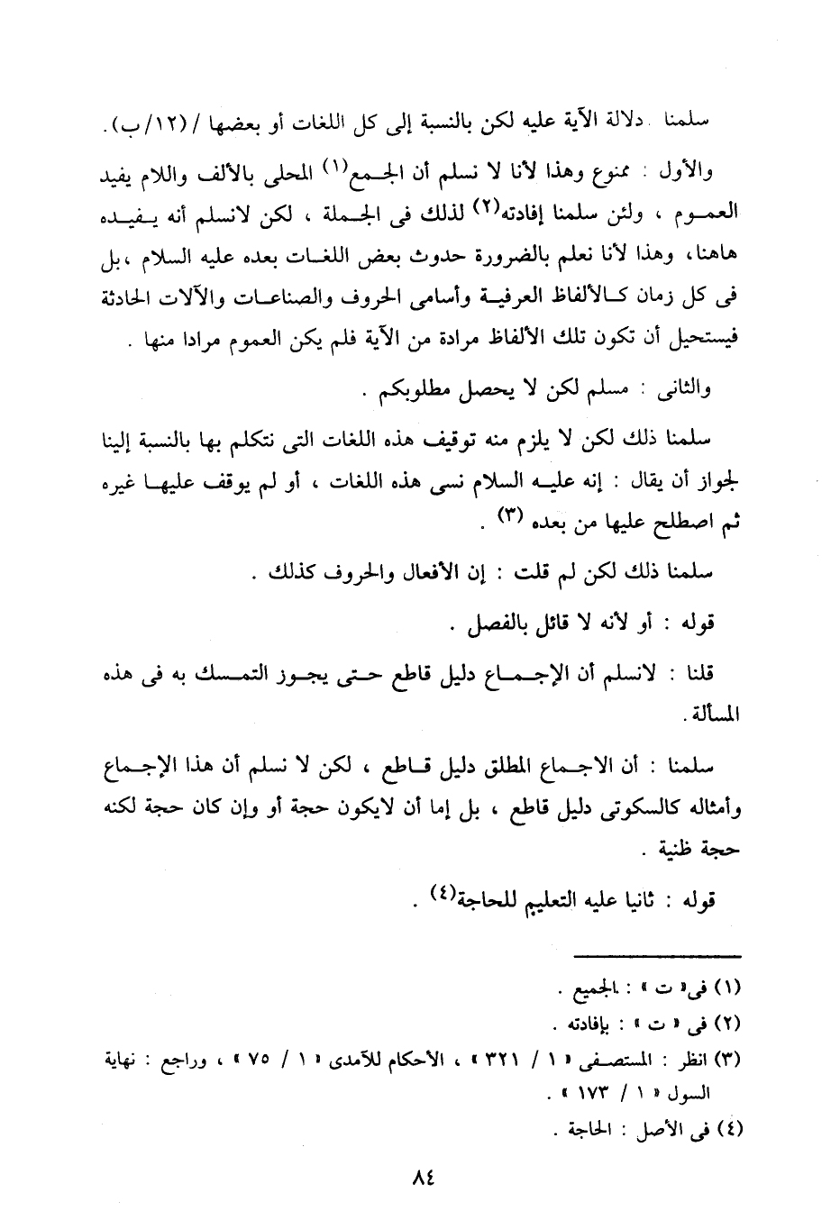 سلمنا. دلالة الآية عليه لكن بالنسبة إلى كل اللغات أو بعضها / (12/ب).