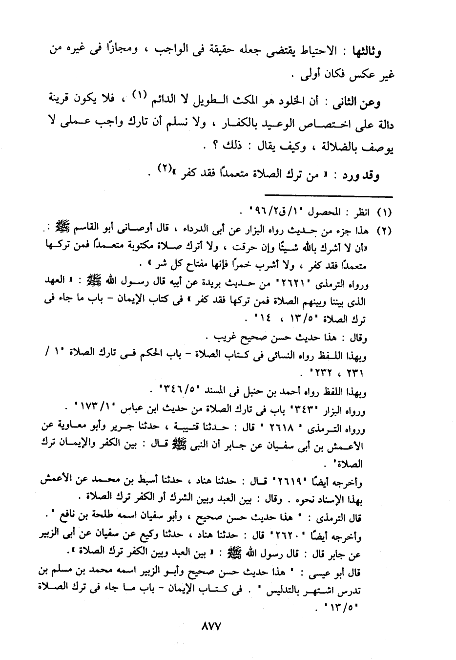 وقد ورد: "من ترك الصلاة متعمدًا فقد كفر".
