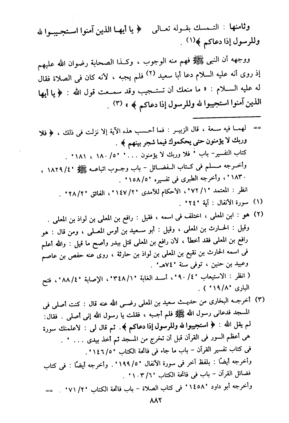 وثامنها: التمسك بقوله تعالى {يا أيها الذين آمنوا استجيبوا لله وللرسول إذا دعاكم}.