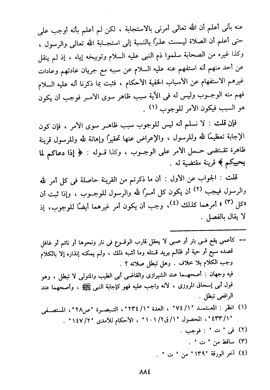 قلت: الجواب عن الأول: أن ما ذكرتم من القرينة حاصلة في كل أمر لله والرسول فيجب أن يكون كل أمرًا لله والرسول للوجوب، وإذا ثبت أن "كل" أمرهما كذلك، وجب أن يكون أمر غيرهما أيضًا للوجوب، إذ لا يقال بالفصل.