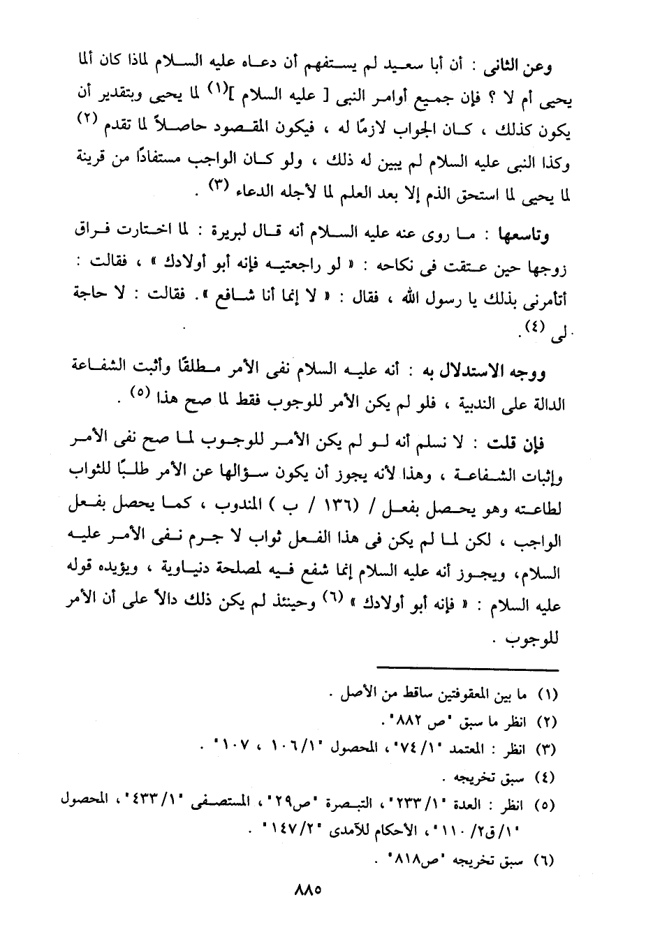فإن قلت: لا نسلم أنه لو لم يكن الأمر للوجوب لما صح نفي الأمر وإثبات الشفاعة، وهذا لأنه يجوز أن يكون سؤالها عن الأمر طلبًا للثواب لطاعته وهو يحصل بفعل / (136/ب) المندوب، كما يحصل بفعل الواجب، لكن لما لم يكن في هذا الفعل ثواب لا جرم نفي الأمر عليه السلام، ويجوز أنه عليه السلام إنما شفع فيه لمصلحة دنياوية، ويؤيده قوله عليه السلام: "فإنه أبو أولادك" وحينئذ لم يكن ذلك دالاً على أن الأمر للوجوب.