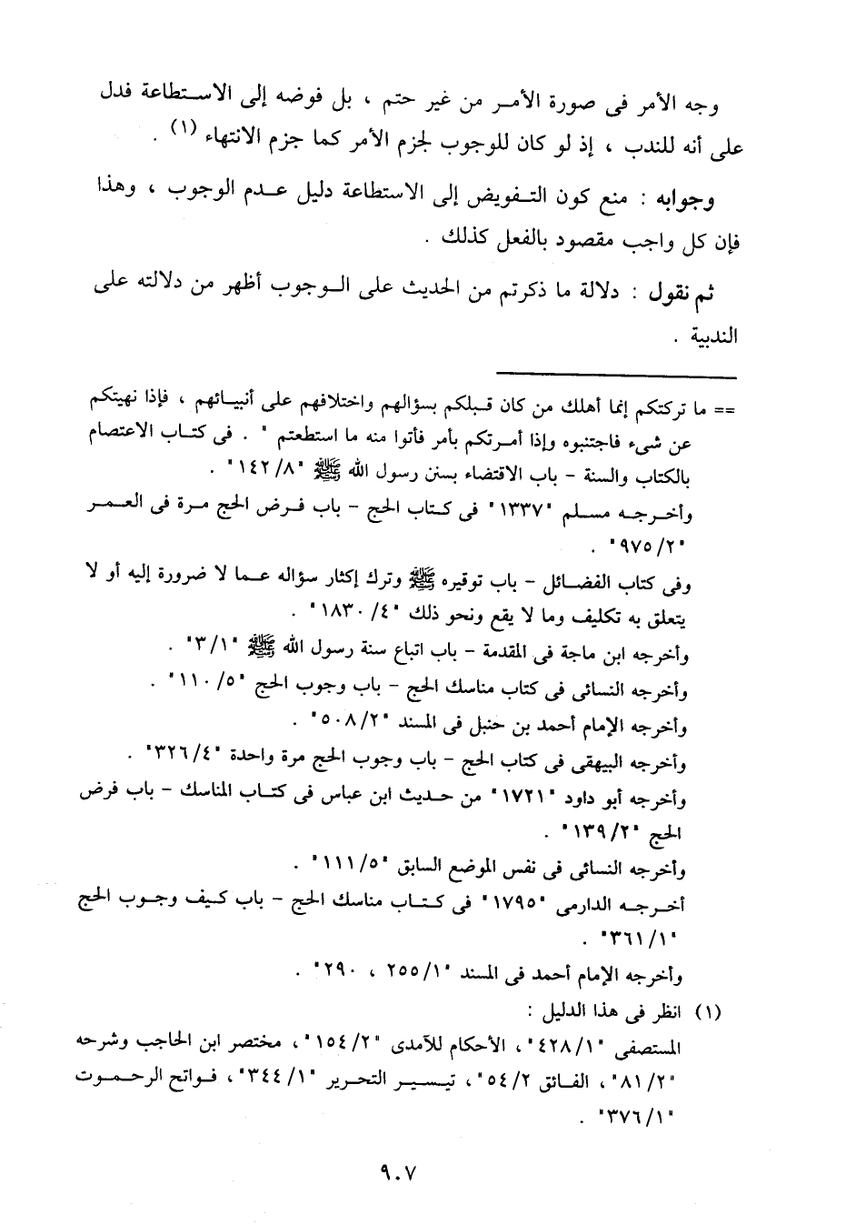 وجوابه: منع كون التفويض إلى الاستطاعة دليل عدم الوجوب، وهذا فإن كل واجب مقصود بالفعل كذلك.