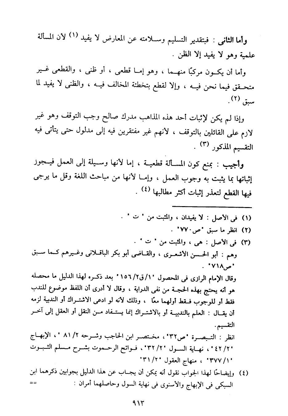 وإذا لم يكن لإثبات أحد هذه المذاهب مدرك صالح وجب التوقف وهو غير لازم على القائلين بالتوقف، لأنهم غير مفتقرين فيه إلى مدلول حتى يتأتي فيه التقسيم المذكور.