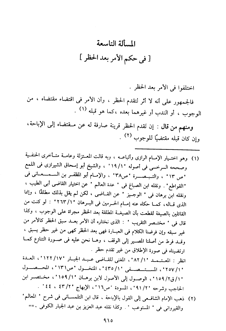 المسألة التاسعة