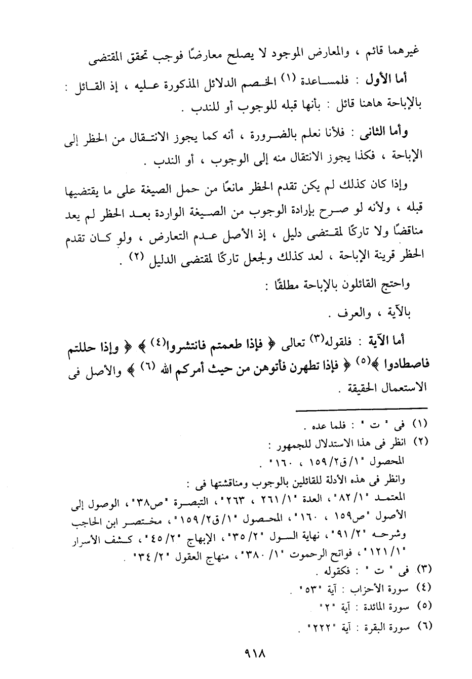أما الأول: فلمساعدة الخصم الدلائل المذكورة عليه، إذ القائل: بالإباحة ها هنا قائل: بأنها قبله للوجوب أو للندب.