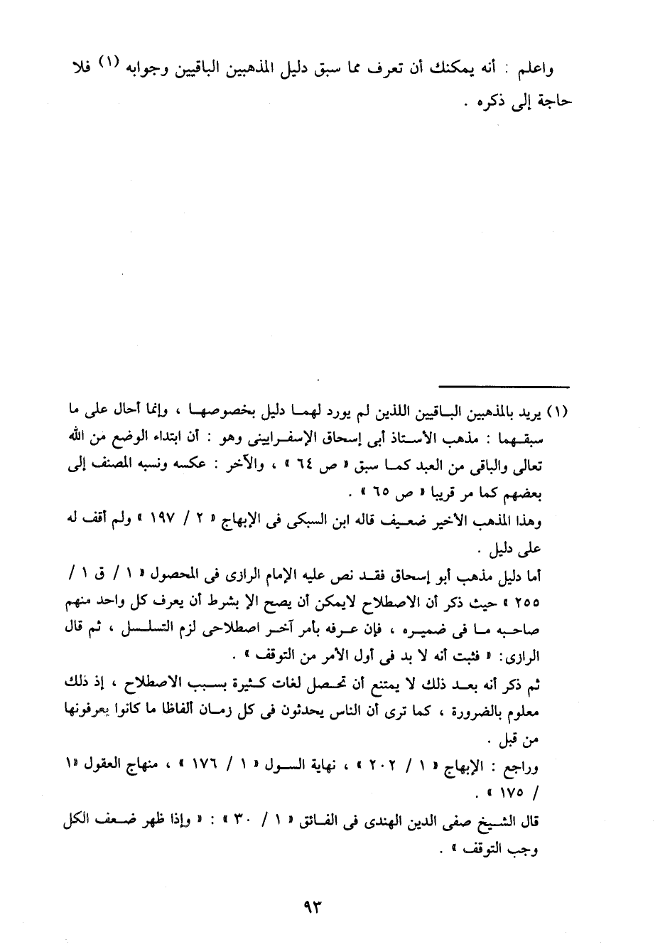 واعلم: أنه يمكنك أن تعرف مما سبق دليل المذهبين الباقيين وجوابه فلا حاجة إلى ذكره.