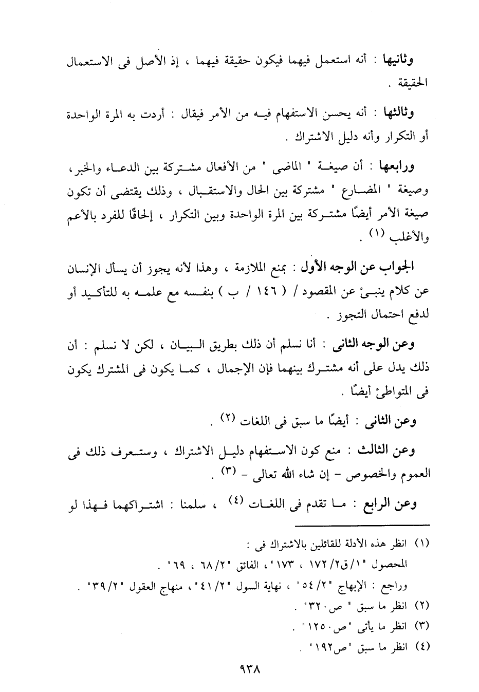 وعن الرابع: ما تقدم في اللغات، سلمنا: اشتراكهما فهذا لو
