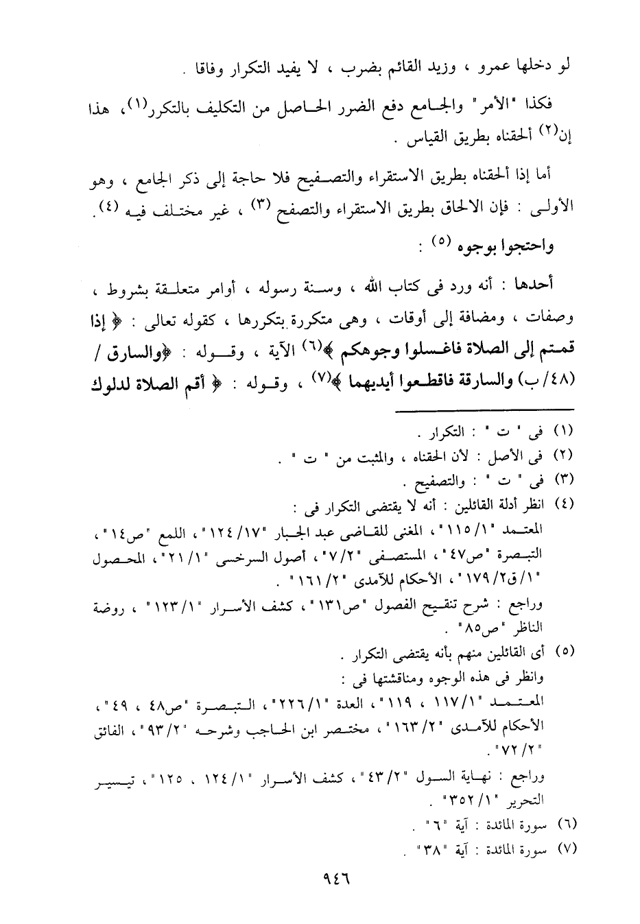 أحدها: أنه ورد في كتاب الله، وسنة رسوله، أوامر متعلقة بشروط، وصفات، ومضافة إلى أوقات، وهي متكررة بتكررها، كقوله تعالى: {إذا قمتم إلى الصلاة فاغسلوا وجوهكم} الآية، وقوله: {والسارق / (48/ب) والسارقة فاقطعوا أيديهما}، وقوله:} أقم الصلاة لدلوك