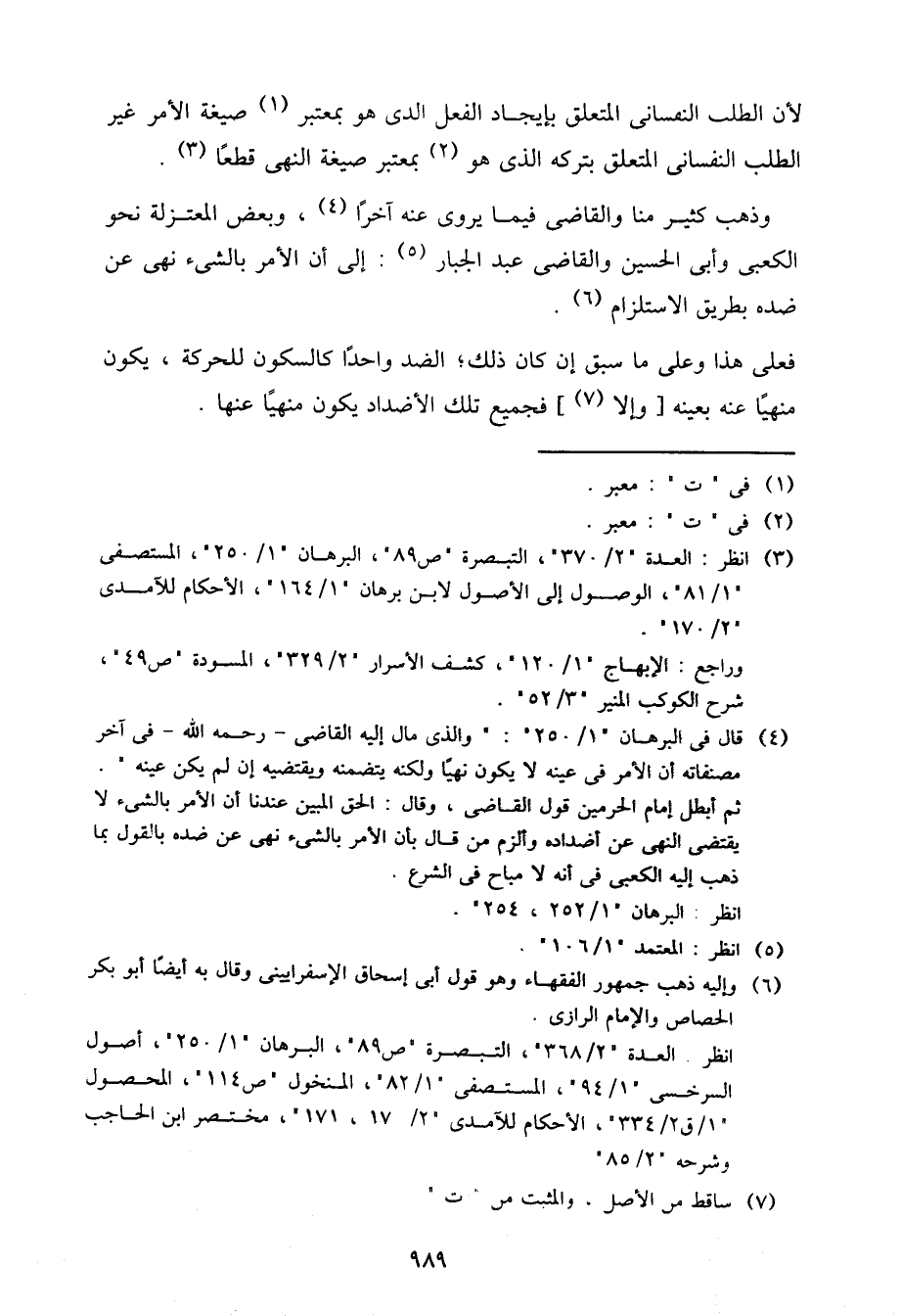 وذهب كثير منا والقاضي فيما يروى عنه آخرًا، وبعض المعتزلة نحو الكعبي وأبي الحسين والقاضي عبد الجبار: إلى أن الأمر بالشيء نهي عن ضده بطريق الاستلزام.