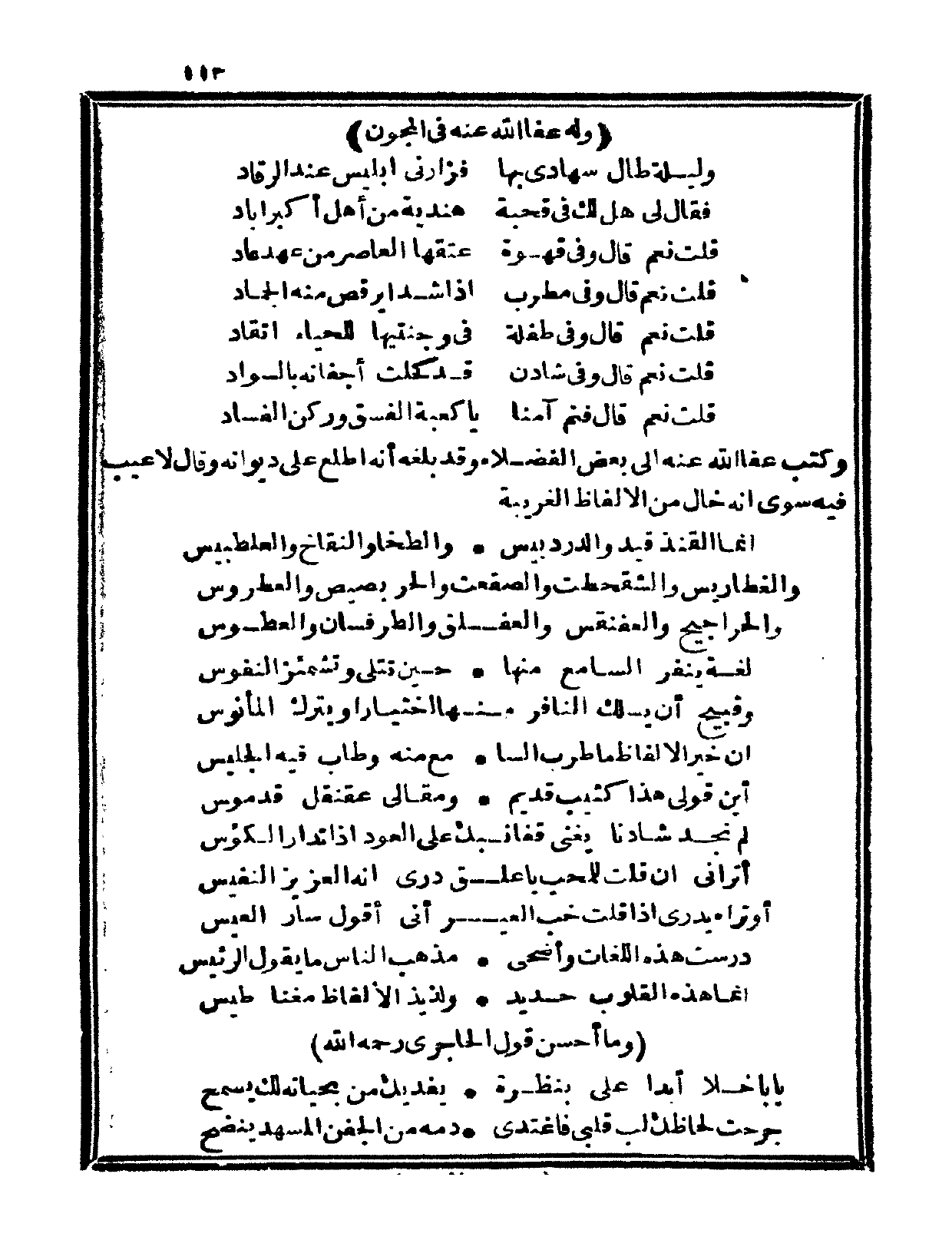 وكتب عفا الله عنه إلى بعض الفضلاء وقد بلغه أنه اطلع على ديوانه وقال لا عيب فيه سوى أنه خال من الألفاظ الغريبة