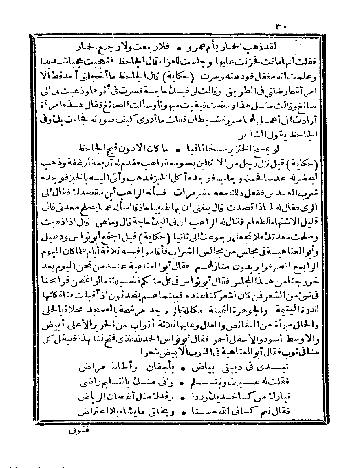 فقلت أنها ماتت فحزنت عليها وجلست في العزاء، قال الجاحظ فتعجبت عجباً شديداً وعلمت أنه مغفل فودعته وسرت.