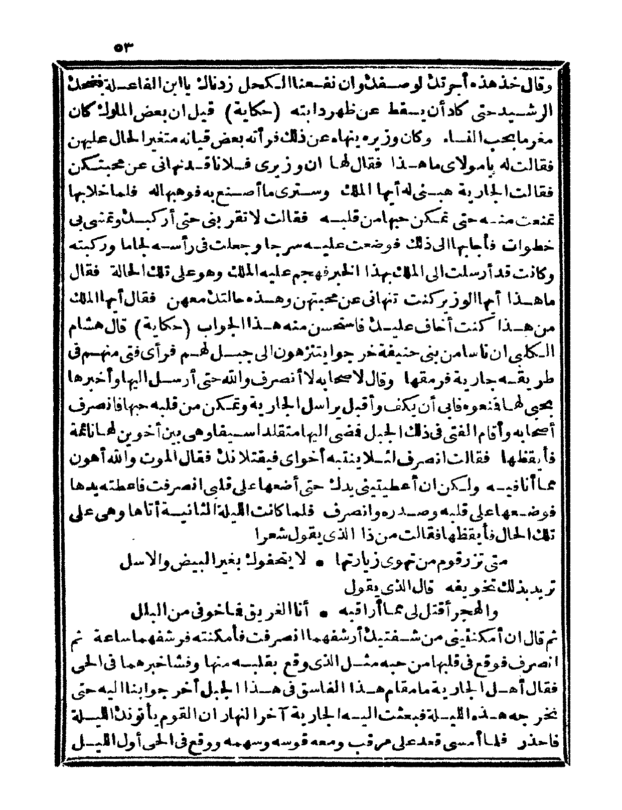 مقام هذا الفاسق في هذا الجبل اخرجوا بنا إليه حتى نخرجه هذه الليلة فبعثت إليه الجارية آخر النهار أن القوم يأتونك الليلة فاحذر، فلما أمسى قعد على مرقب ومعه قوسه وسهمه ووقع في الحيّ أول الليل