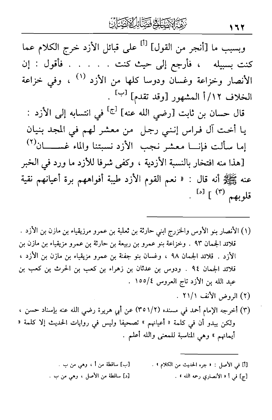 وبسبب ما [أنجر من القول] على قبائل الأزد خرج الكلام عما كنت بسبيله، فأرجع إلى حيث كنت .. .. فأقول: إن الأنصار وخزاعة وغسان ودوسا كلها من الأزد، وفي خزاعة الخلاف المشهور [وقد تقدم].