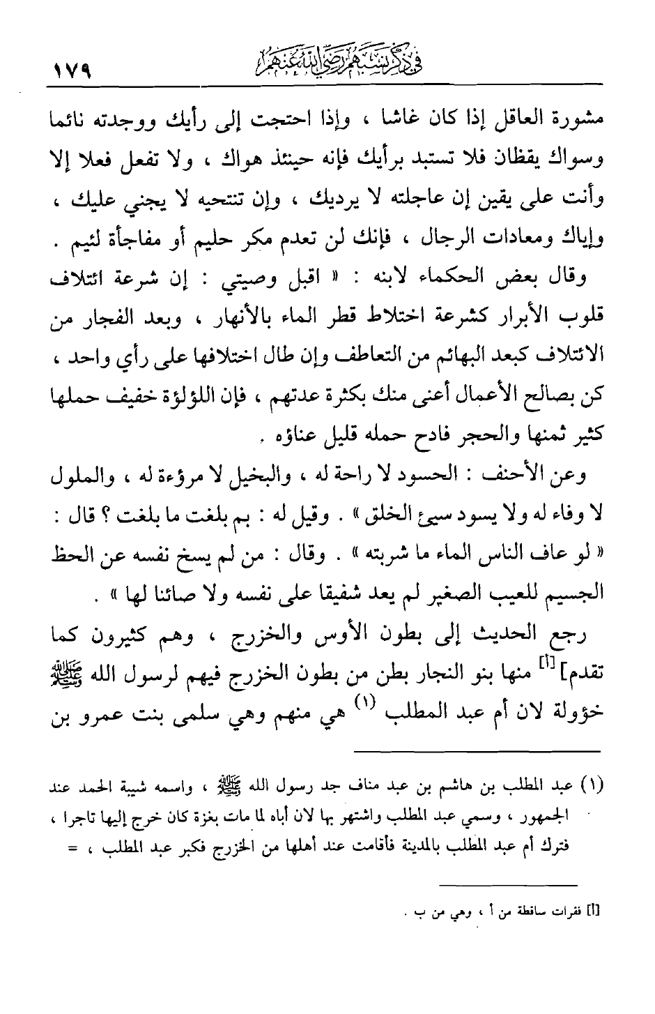 رجع الحديث إلى بطون الأوس والخزرج، وهم كثيرون كما تقدم] منها بنو النجار بطن من بطون الخزرج فيهم لرسول الله صلى الله عليه وسلم خؤولة لأن أم عبد المطلب هي منهم وهي سلمى بنت عمرو بن