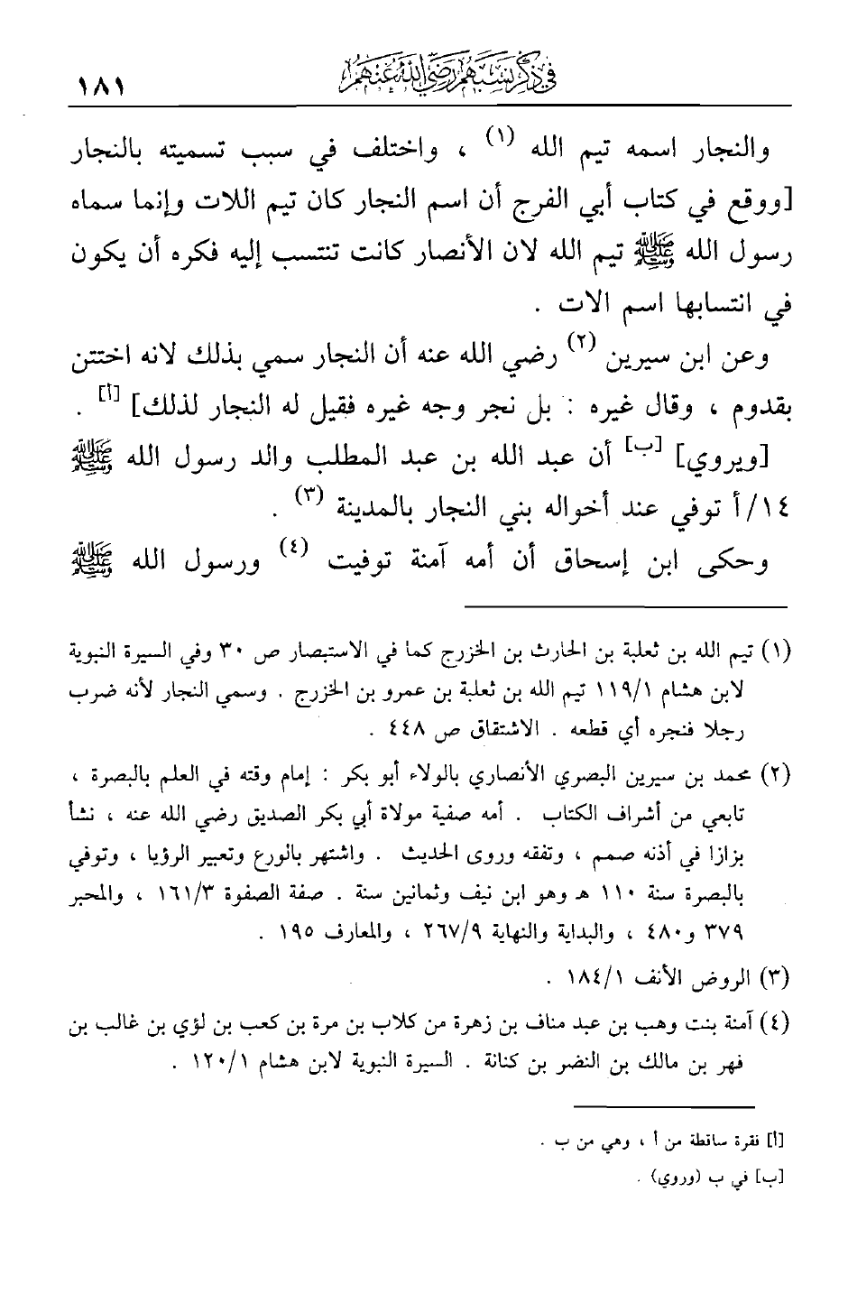 [ويروي] أن عبد الله بن عبد المطلب والد رسول الله صلى الله عليه وسلم توفي عند أخواله بني النجار بالمدينة.