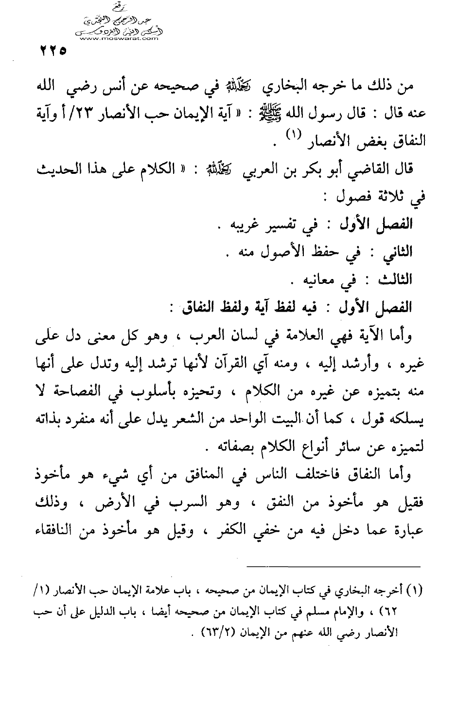 قال القاضي أبو بكر بن العربي رحمه الله: ((الكلام على هذا الحديث في ثلاثة فصول: