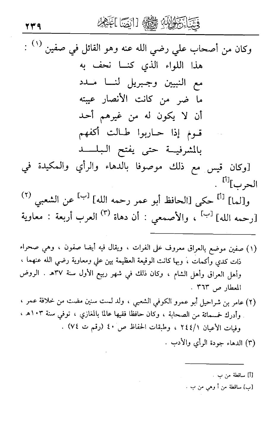وكان من أصحاب علي رضي الله عنه وهو القائل في صفين: