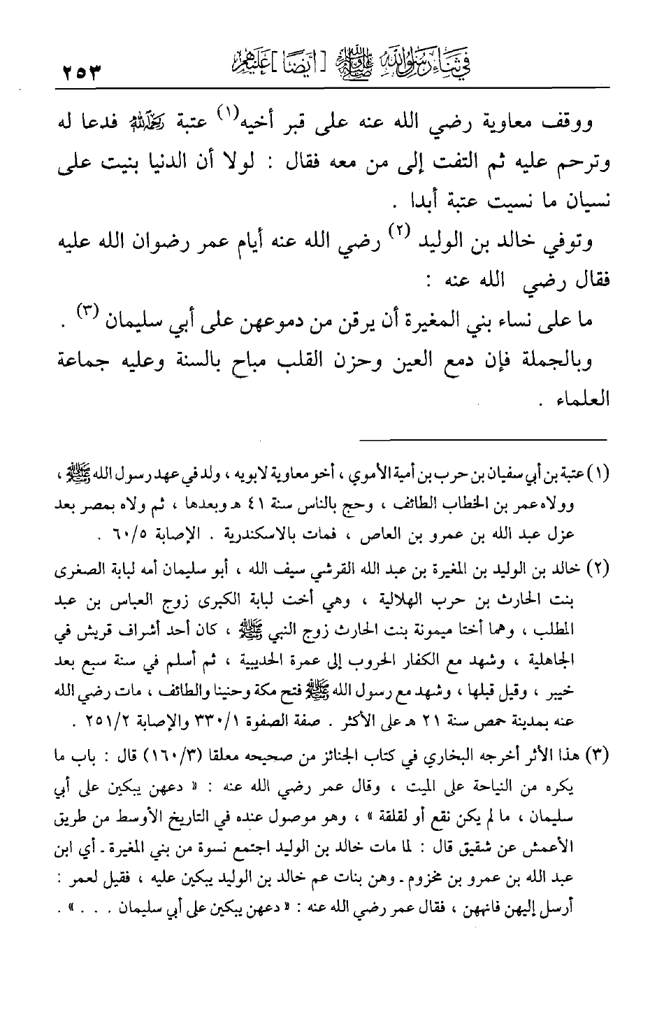 ووقف معاوية رضي الله عنه على قبر أخيه عتبة رحمه الله فدعا له وترحم عليه ثم التفت إلى من معه فقال: لولا أن الدنيا بنيت على نسيان ما نسيت عتبة أبداً.