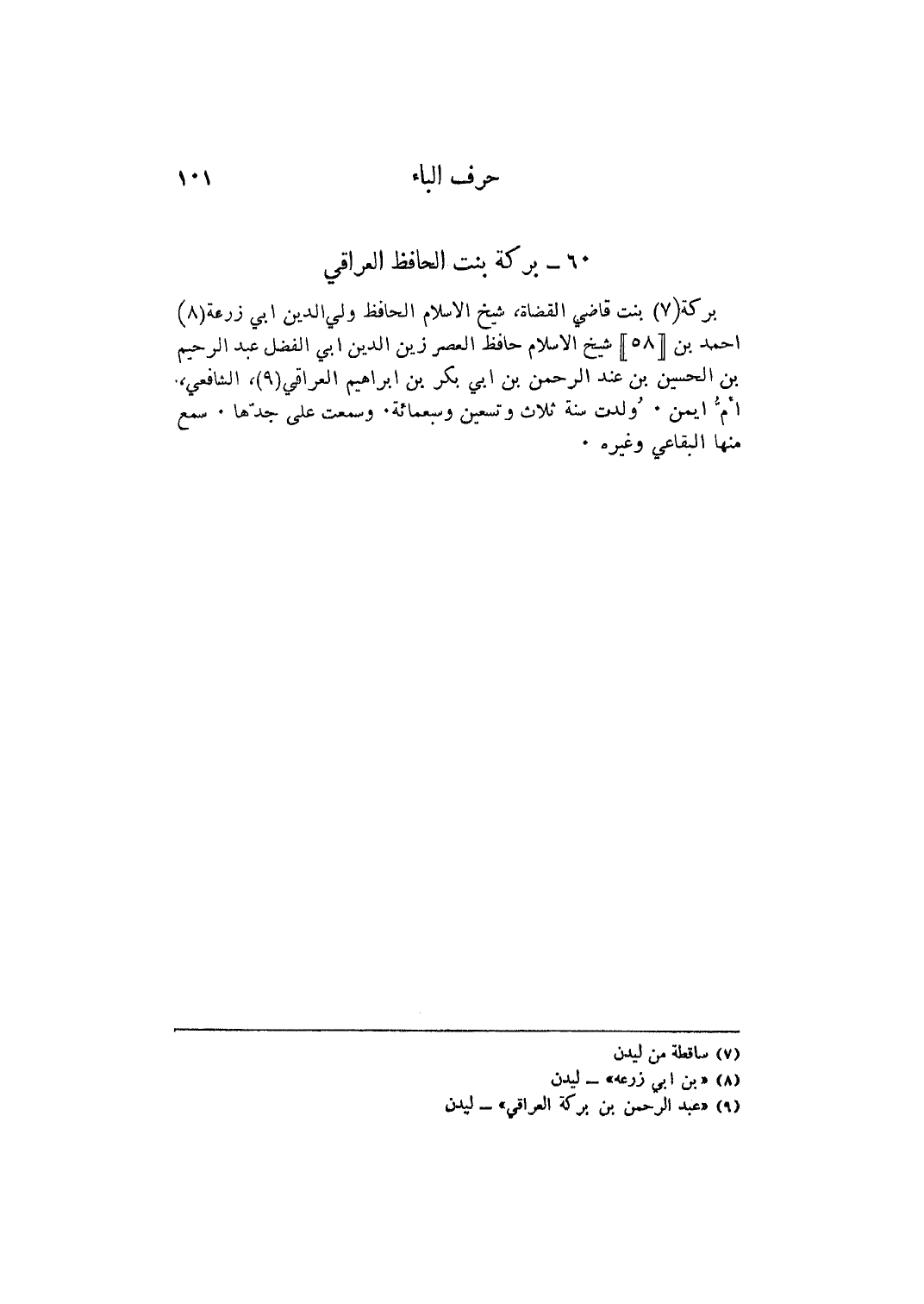 بركَة بنت قَاضِي الْقُضَاة، شيخ الْإِسْلَام الْحَافِظ ولي الدّين أبي زرْعَة أَحْمد بن شيخ الْإِسْلَام حَافظ الْعَصْر زين الدّين أبي الْفضل عبد الرَّحِيم بن الْحُسَيْن بن عبد الرَّحْمَن بن أبي بكر بن إِبْرَاهِيم الْعِرَاقِيّ، الشَّافِعِي، أم ايمن. ولدت سنة ثَلَاث وَتِسْعين وَسَبْعمائة. وَسمعت على جدها. سمع مِنْهَا البقاعي وَغَيره.