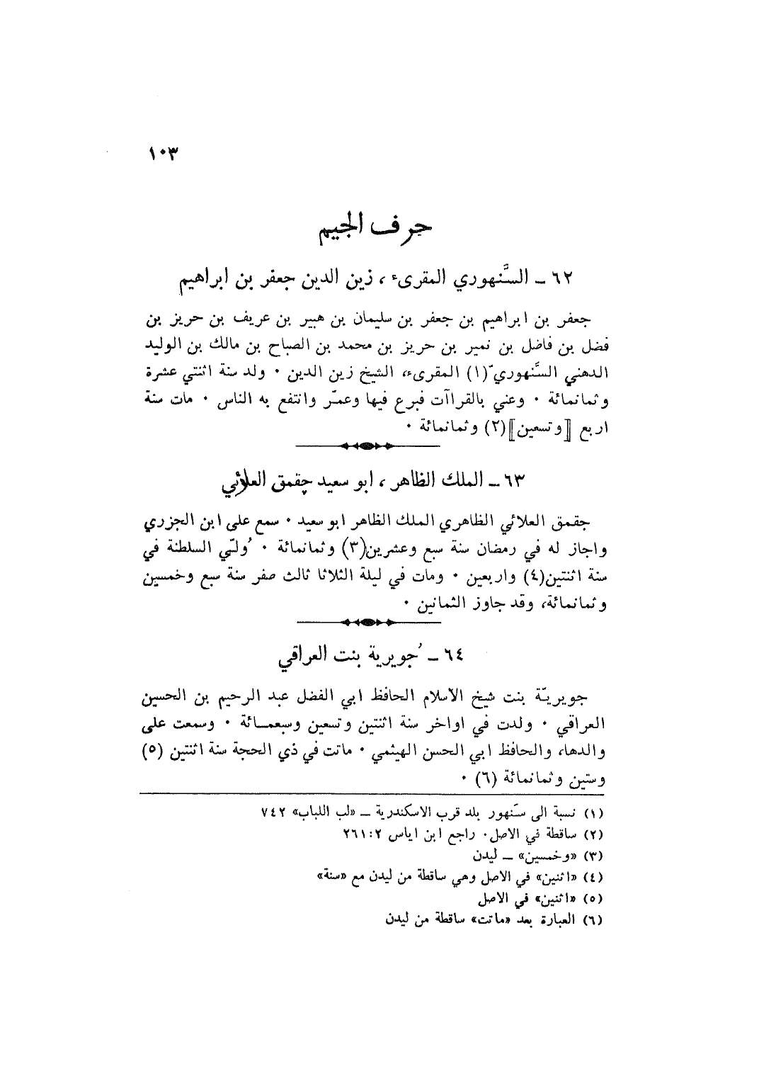 62 - السنهوري الْمُقْرِئ، زين الدّين جَعْفَر بن إِبْرَاهِيم