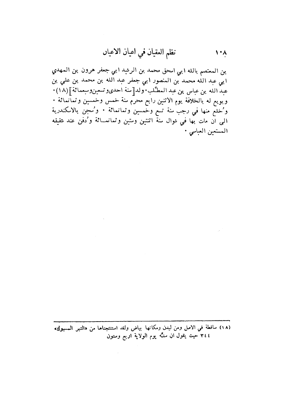 بن المعتصم بِاللَّه أبي إِسْحَاق مُحَمَّد بن الرشيد أبي جَعْفَر هَارُون بن الْمهْدي أبي عبد الله مُحَمَّد بن الْمَنْصُور أبي جَعْفَر عبد الله بن مُحَمَّد بن عَليّ بن عبد الله بن عَبَّاس بن عبد الْمطلب. ولد سنة إِحْدَى وَتِسْعين وَسَبْعمائة. وبويع لَهُ بالخلافة يَوْم الِاثْنَيْنِ رَابِع محرم سنة خمس وَخمسين وَثَمَانمِائَة. وخلع مِنْهَا فِي رَجَب سنة تسع وَخمسين وَثَمَانمِائَة. وخلع مِنْهَا فِي رَجَب سنة تسع وَخمسين وَثَمَانمِائَة. وسجن بالإسكندرية إِلَى أَن مَاتَ بهَا فِي شَوَّال سنة اثْنَتَيْنِ وَسِتِّينَ وَثَمَانمِائَة وَدفن عِنْد شقيقه المستعين العباسي.