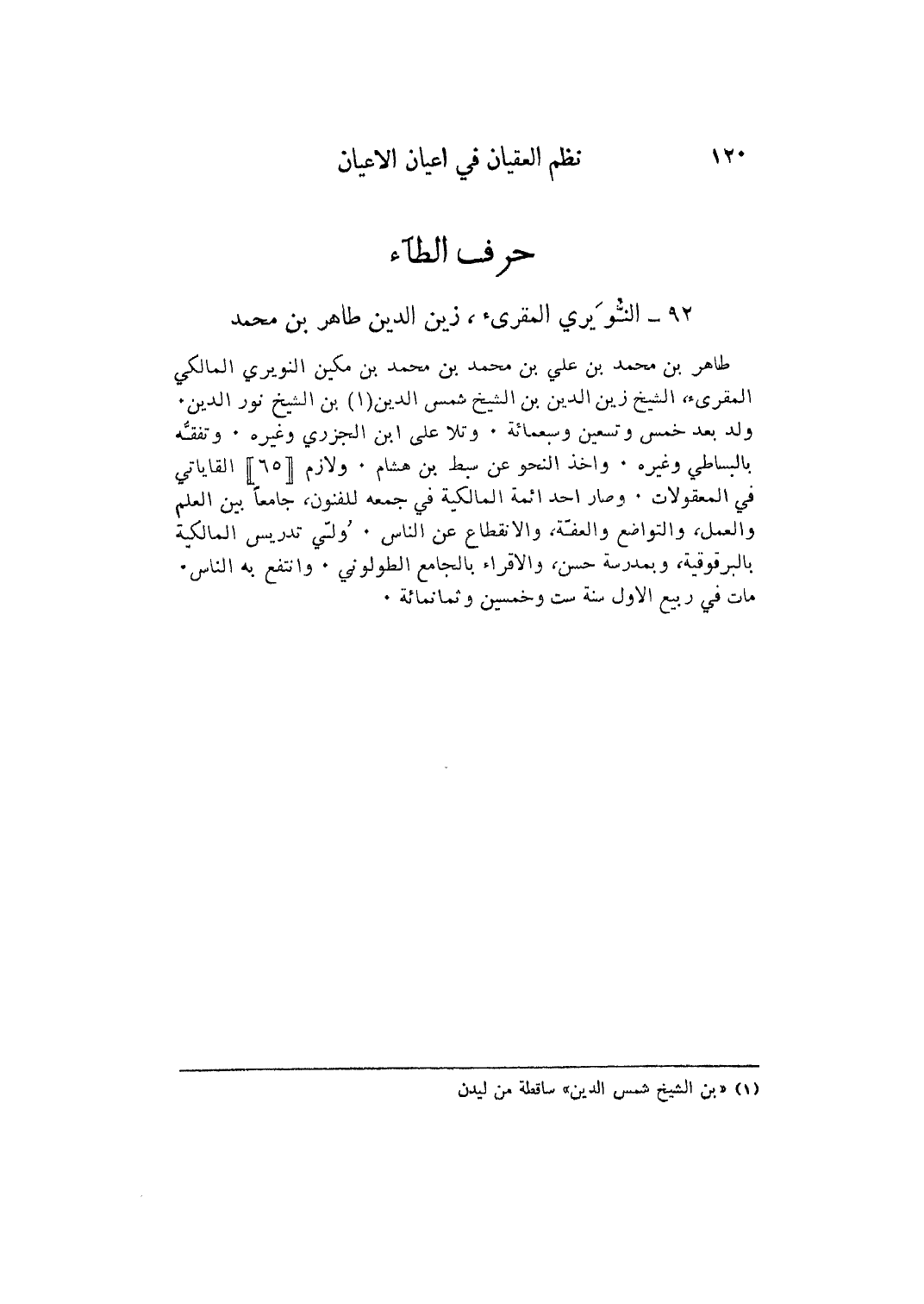 92 - النويري المقرىء، زين الدّين طَاهِر بن مُحَمَّد