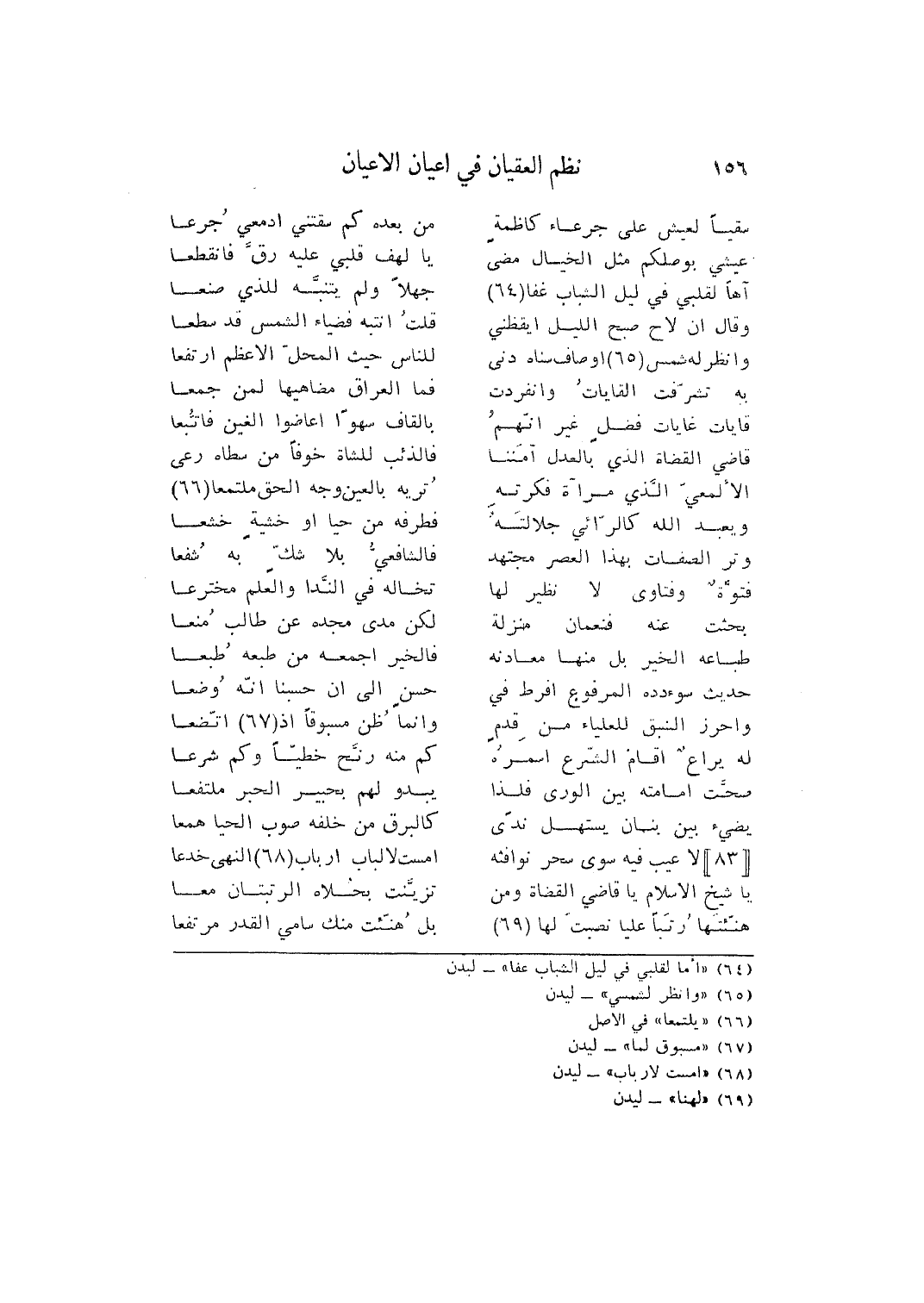 قَاضِي الْقُضَاة الَّذِي بِالْعَدْلِ آمتنا ... فالذئب للشاة خوفًا من سطاه رعى