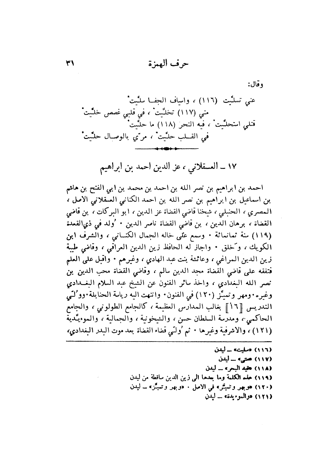 17 - الْعَسْقَلَانِي، عز الدّين أَحْمد بن إِبْرَاهِيم