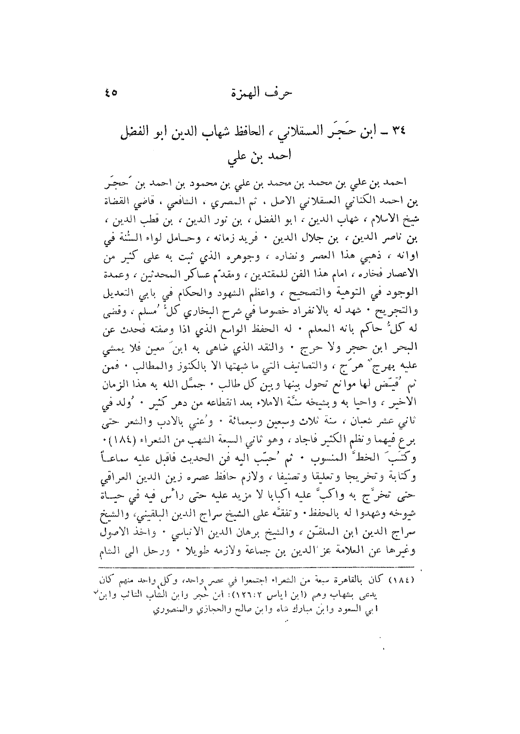 34 - ابْن حجر الْعَسْقَلَانِي، الْحَافِظ شهَاب الدّين أَبُو الْفضل أَحْمد بن عَليّ