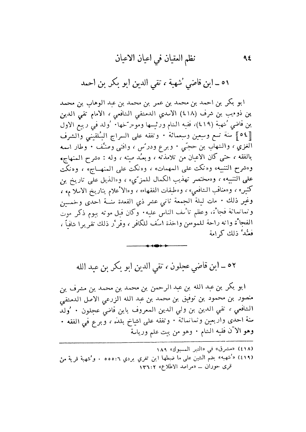 52 - ابْن قَاضِي عجلون، تَقِيّ الدّين أَبُو بكر بن عبد ال