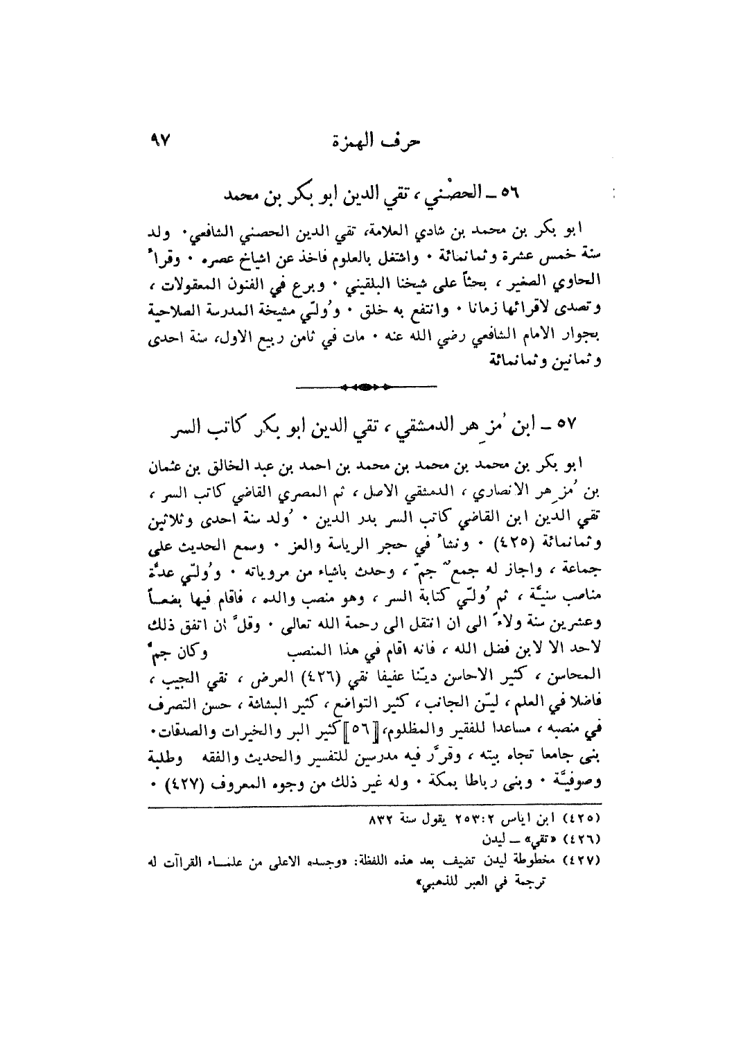 56 - الحصني، تَقِيّ الدّين أَبُو بكر بن مُحَمَّد