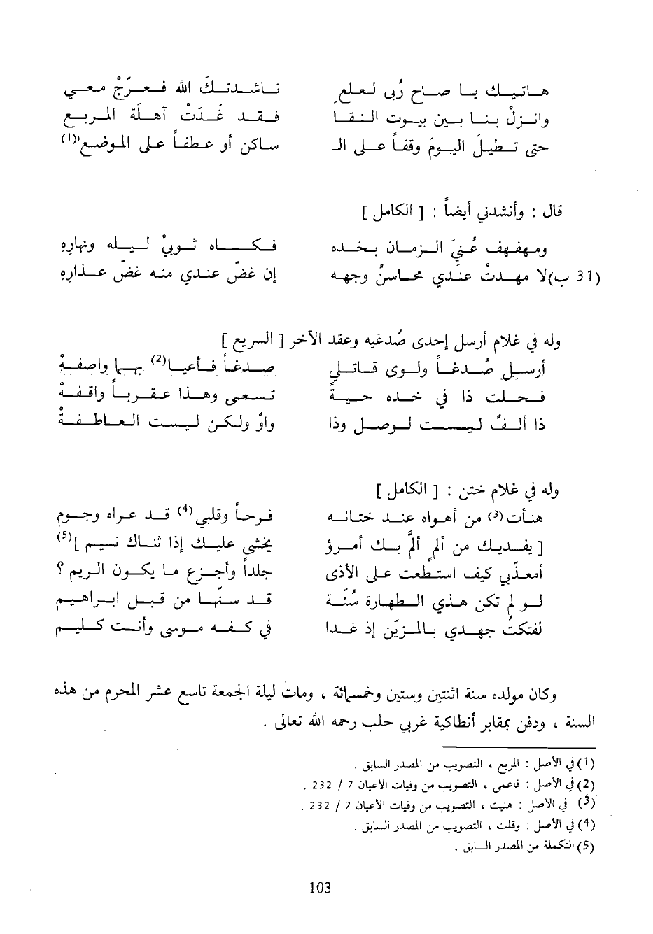 (31 ب) لا مهدت عندي محاسن وجهه ... إن غضّ عندي منه غضّ عذاره