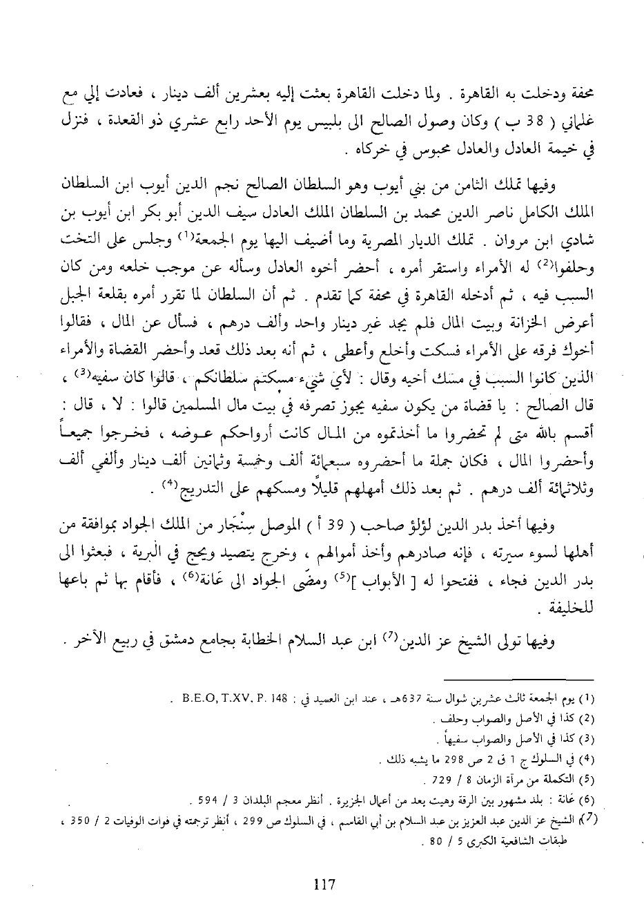(¬7) الشيخ عز الدين عبد العزيز بن عبد السلام بن أبي القاسم، في السلوك ص 299، أنظر ترجمته في فوات الوفيات 2/ 350، طبقات الشافعية الكبرى 5/ 80.