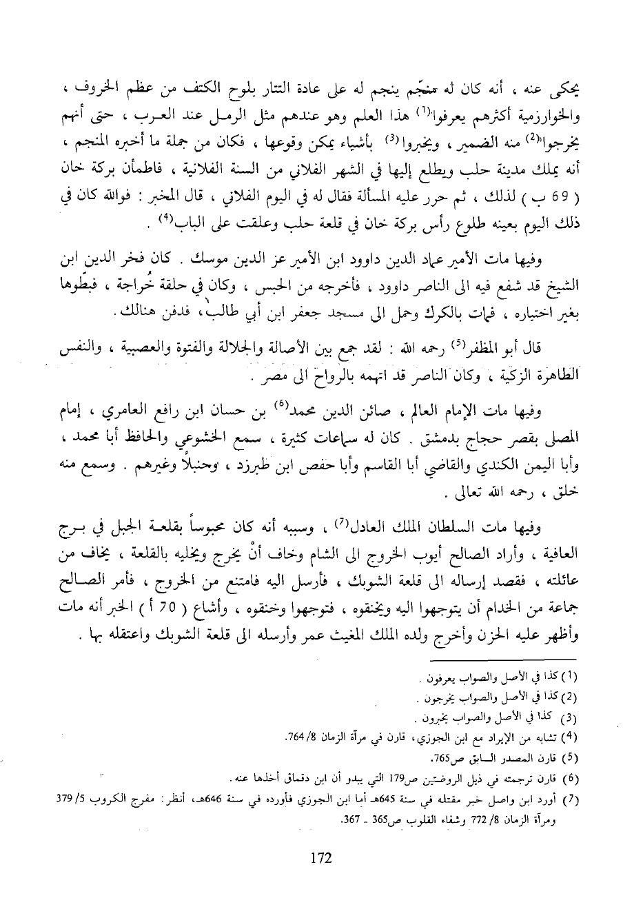 (¬4) تشابه من الإيراد مع ابن الجوزي، قارن في مرآة الزمان 8/ 764.