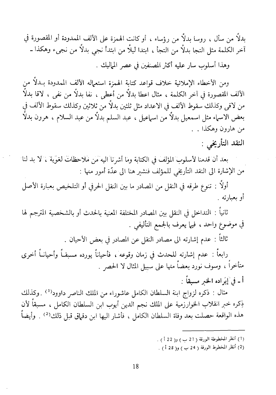 بعد أن قدمنا لأسلوب المؤلف في الكتابة وما أشرنا اليه من ملاحظات لغوية، لا بد لنا من الإشارة الى النقد التأريخي للمؤلف فنشير هنا الى عدّة أمور منها:
