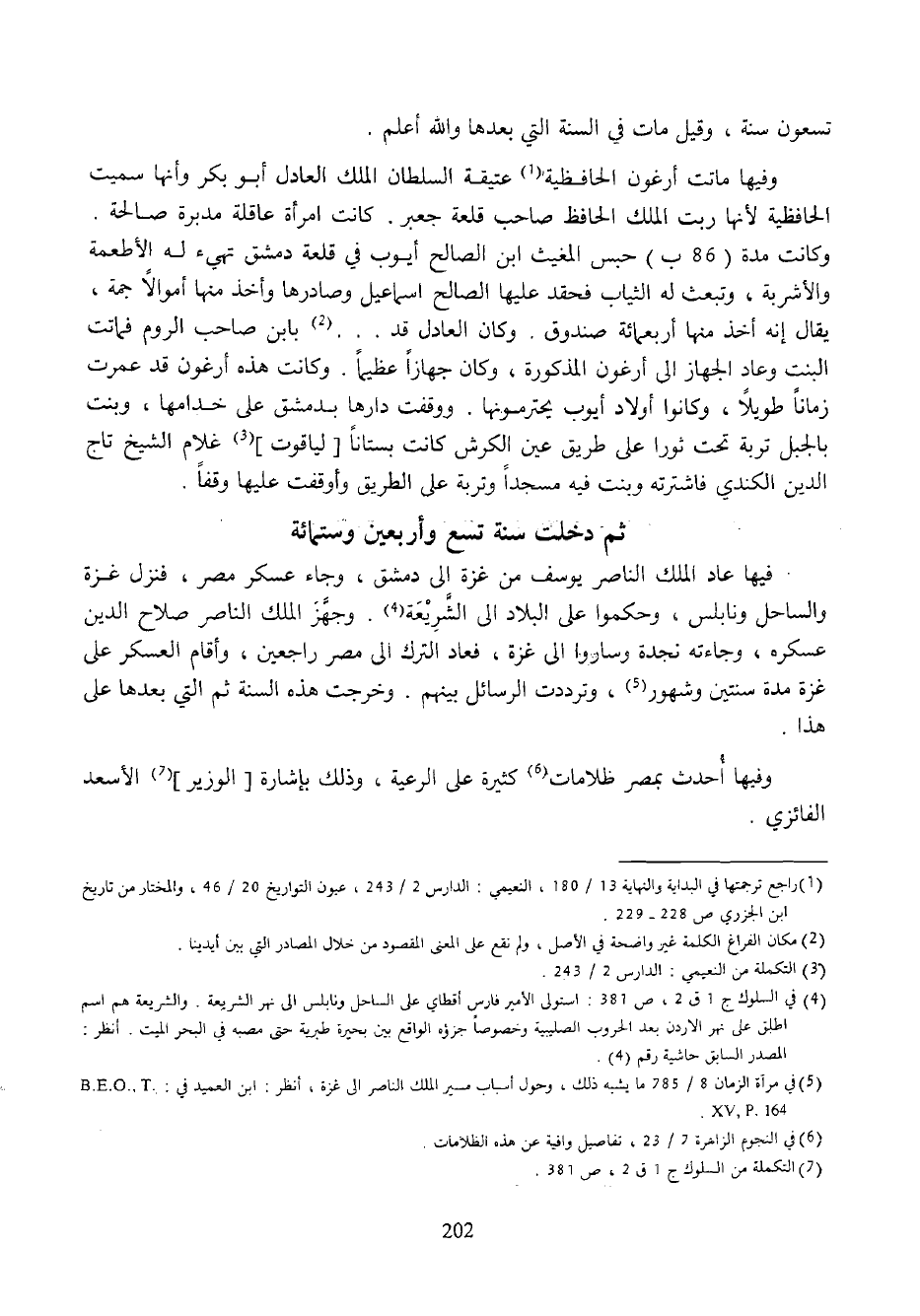 (¬4) في السلوك ج 1 ق 2، ص 381: استولى الأمير فارس أقطاي على الساحل ونابلس الى نهر الشريعة. والشريعة هم اسم اطلق على نهر الاردن بعد الحروب الصليبية وخصوصا جزؤه الواقع بين بحيرة طبرية حتى مصبه في البحر الميت. أنظر: المصدر السابق حاشية رقم (4).