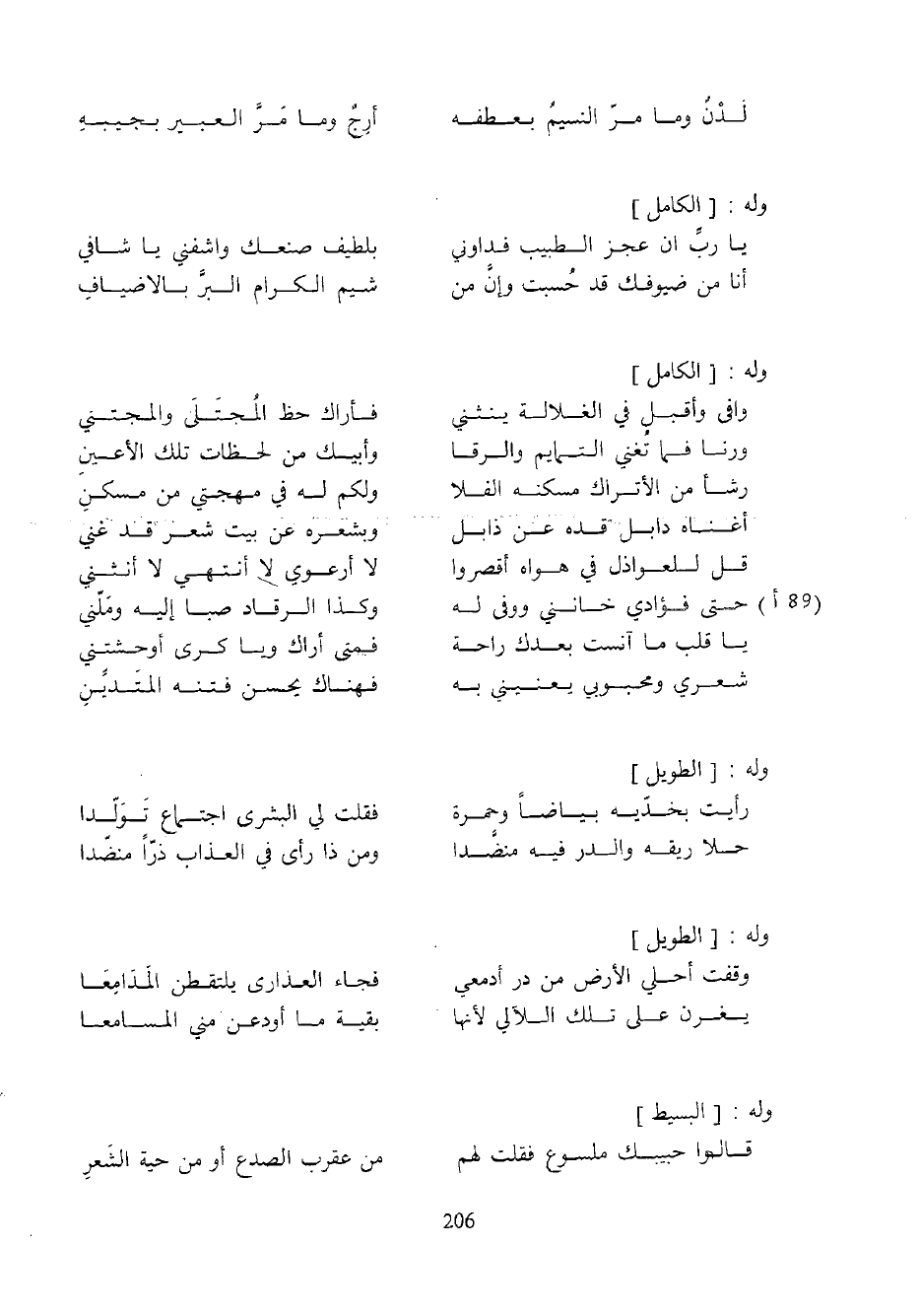 (89 أ) حتى فؤادي خانني ووفى له ... وكذا الرقاد صبا إليه وملّني