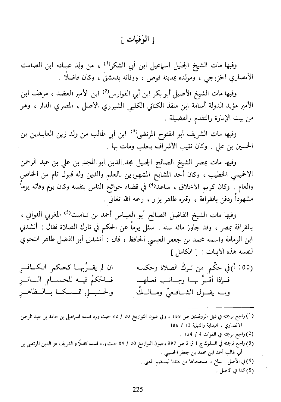 وفيها مات الشيخ الفاضل الصالح أبو العباس أحمد بن تاميت (¬5) المغربي اللواتي، بالقرافة بمصر، وقد جاوز مائة سنة. سئل يوما عن الحكم في تارك الصلاة فقال: أنشدني ابن الرمامة واسمه محمد بن جعفر العبسي الحافظ، قال: أنشدني أبو الفضل طاهر النحوي لنفسه هذه الأبيات: [الكامل]
