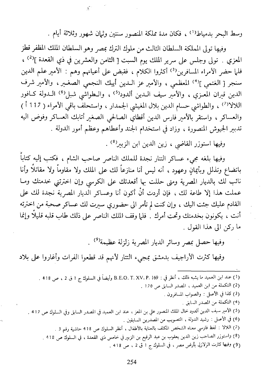 (¬1) عند ابن العميد ما يشبه ذلك، أنظر في B .E .O,T .XV,P .169 : وأيضا في السلوك ج 1 ق 2، ص 418.