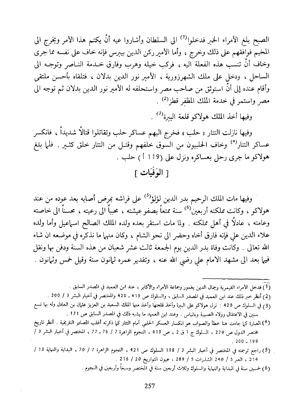 (¬4) العبارة كما جاءت هنا خطأ والصواب هو انكسار العسكر الحلبي أمام التتار كما ذكرته أغلب المصادر التاريخية. أنظر تاريخ مختصر الدول ص 279، السلوك ج 1 ق 2، ص 419، النجوم الزاهرة 7/ 76 - 77، المختصر في أخبار البشر 3/ 199 - 200.