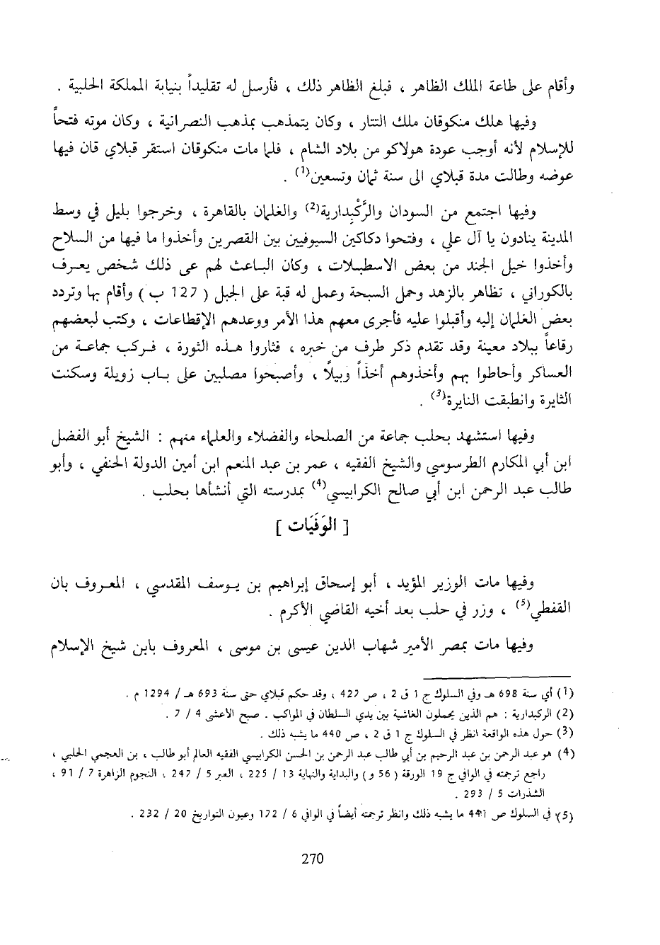 (¬1) أي سنة 698 هـ وفي السلوك ج 1 ق 2، ص 427، وقد حكم قبلاي حتى سنة 693 هـ / 1294 م.
