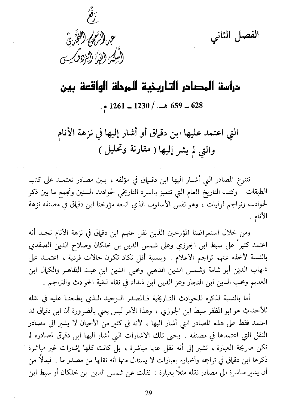دراسة المصادر التاريخية للمرحلة الواقعة بين 628 - 659 هـ / 1230 - 1261 م.
